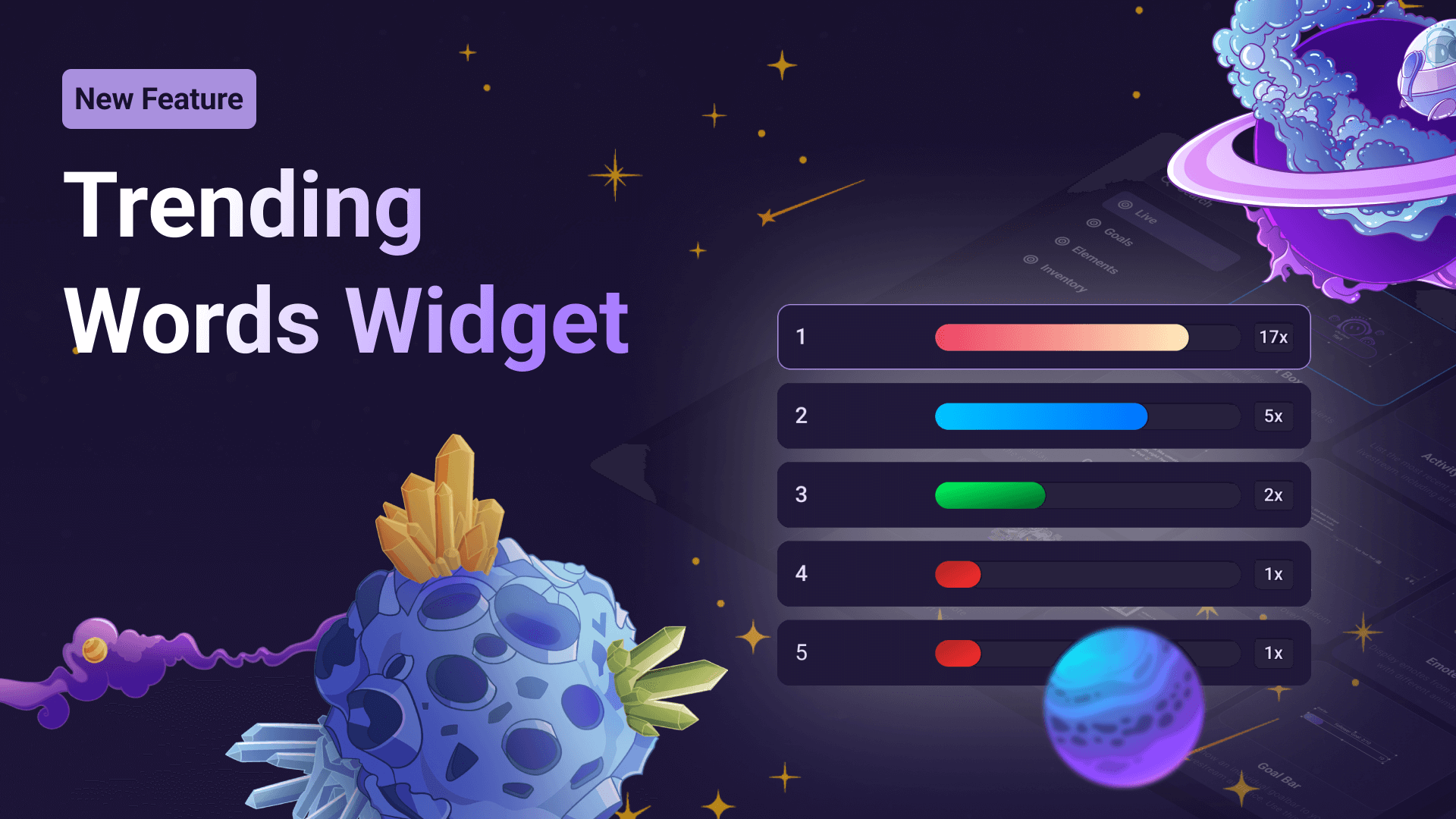 This interactive overlay enables you to display trending words or emotes within your chat β the perfect companion for identifying the opinion of your chat.